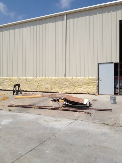 A common question is; do I have to replace all of my metal roof or wall panels, or can I just replace the defective, or damaged metal sections? Thats up to you! In the above metal building repair, the bottom of the wall panels had been damaged by materials being piled in front of the building and pushed in.